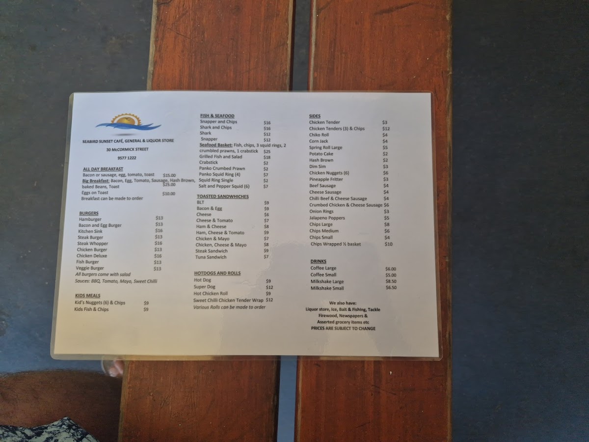 Welcome to Seabird Sunset Cafe, a hidden gem located at 30 McCormick St, Seabird WA. This charming cafe offers a delightful menu that caters to every palate. Start your day with a hearty breakfast, praised by customers for its generous portions and great coffee. You can't miss the "big breakfast," which perfectly balances quality and value.